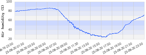 | Minima: 5.8 ºC | Temperatura Atual: 5.8 ºC | Maxima: 11 ºC | Minima: 81.8 % | Humidade Atual: 95.9 % | Maxima: 100 % |