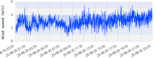 | Velocidade vento atual: 1.2 m/s | Maxima: 6.223 m/s | |
