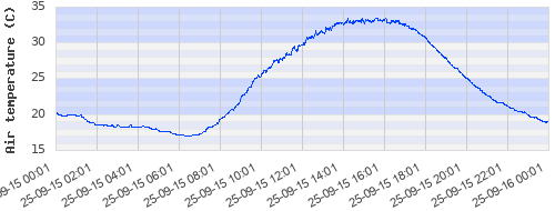 20.25 ºC | 18.47 ºC | 17.17 ºC | 22.14 ºC | 29.81 ºC | 33 ºC | 30.77 ºC | 22.69 ºC |