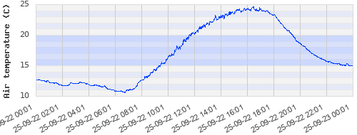 12.74 ºC | 12.1 ºC | 10.84 ºC | 14.37 ºC | 20.29 ºC | 23.52 ºC | 23.39 ºC | 16.96 ºC |