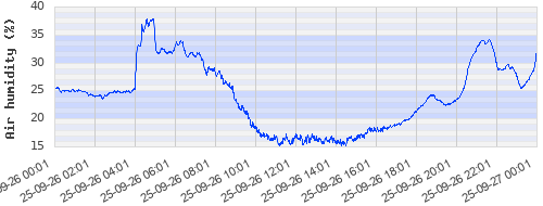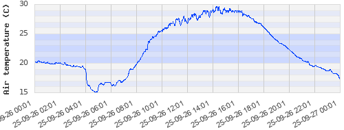 20.18 ºC | 19.42 ºC | 16.49 ºC | 23.57 ºC | 26.87 ºC | 29.08 ºC | 26.17 ºC | 20.65 ºC |