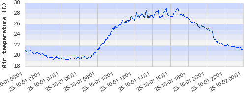 21.23 ºC | 19.7 ºC | 19.56 ºC | 23.11 ºC | 27.04 ºC | 27.48 ºC | 27.1 ºC | 22.98 ºC |