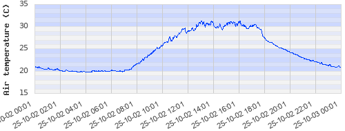 21.05 ºC | 19.98 ºC | 20.19 ºC | 23.65 ºC | 29.04 ºC | 30.35 ºC | 27.47 ºC | 22.97 ºC |