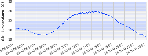 20.88 ºC | 19.01 ºC | 18.13 ºC | 24.32 ºC | 29.16 ºC | 29.64 ºC | 26.43 ºC | 21.34 ºC |