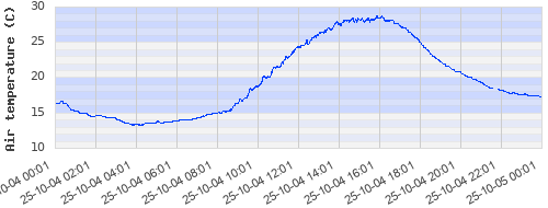 16.43 ºC | 14.24 ºC | 13.82 ºC | 16.29 ºC | 24.16 ºC | 28.27 ºC | 25.03 ºC | 19.38 ºC |