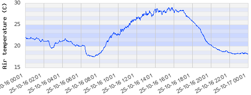 22.15 ºC | 19.79 ºC | 19.96 ºC | 21.48 ºC | 26.56 ºC | 28.28 ºC | 25.77 ºC | 18.95 ºC |
