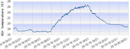 18.06 ºC | 17.68 ºC | 17.2 ºC | 20.23 ºC | 24.75 ºC | 26.76 ºC | 21.9 ºC | 19.84 ºC |