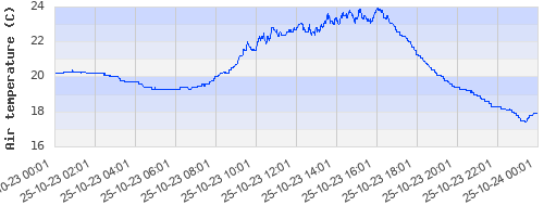 20.23 ºC | 19.97 ºC | 19.3 ºC | 20.66 ºC | 22.82 ºC | 23.32 ºC | 21.33 ºC | 18.89 ºC |