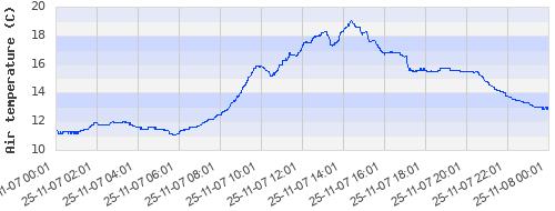 11.37 ºC | 11.89 ºC | 11.24 ºC | 13.96 ºC | 17.24 ºC | 18.19 ºC | 15.58 ºC | 14.78 ºC |