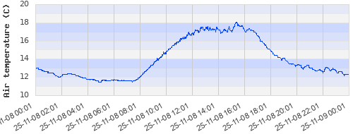 12.88 ºC | 12.3 ºC | 11.73 ºC | 13.41 ºC | 16.9 ºC | 17.1 ºC | 14.92 ºC | 12.99 ºC |
