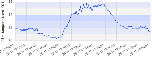 11.92 ºC | 11.88 ºC | 10.82 ºC | 12.05 ºC | 15.17 ºC | 15.37 ºC | 12.99 ºC | 11.79 ºC |