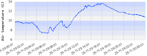 9.84 ºC | 9.63 ºC | 7.42 ºC | 8.92 ºC | 11.93 ºC | 13.42 ºC | 12.48 ºC | 11.4 ºC |