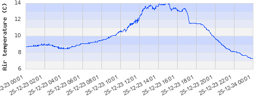 8.65 ºC | 8.74 ºC | 9.06 ºC | 9.98 ºC | 12.19 ºC | 13.96 ºC | 11.53 ºC | 8.68 ºC |