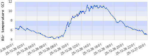 6.33 ºC | 5.87 ºC | 4.53 ºC | 5.5 ºC | 9.81 ºC | 10.7 ºC | 8.63 ºC | 6.5 ºC |