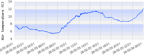7.56 ºC | 6.62 ºC | 5.99 ºC | 6.9 ºC | 10.14 ºC | 11.5 ºC | 9.89 ºC | 8.75 ºC |