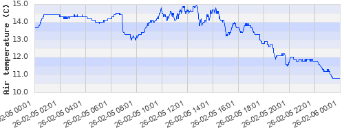 13.68 ºC | 14.33 ºC | 14.24 ºC | 13.96 ºC | 14.64 ºC | 13.47 ºC | 12.81 ºC | 11.83 ºC |