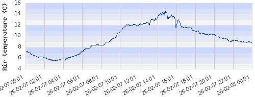 7.22 ºC | 5.64 ºC | 7.28 ºC | 9.2 ºC | 12.04 ºC | 13.85 ºC | 10.92 ºC | 9.6 ºC |