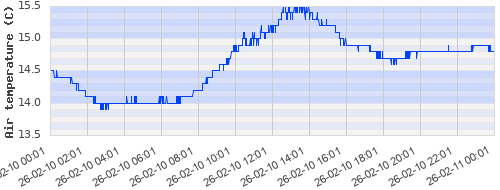 14.5 ºC | 13.94 ºC | 14.08 ºC | 14.51 ºC | 15.14 ºC | 15.19 ºC | 14.75 ºC | 14.8 ºC |