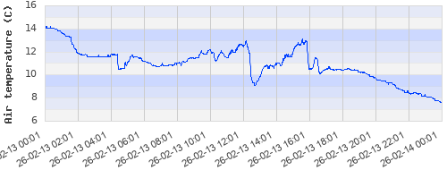 14.16 ºC | 11.63 ºC | 11.22 ºC | 11.41 ºC | 12.39 ºC | 11.98 ºC | 10.41 ºC | 9.27 ºC |