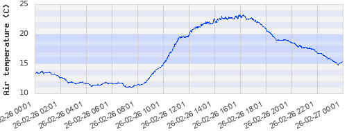 13.42 ºC | 11.88 ºC | 11.67 ºC | 12.9 ºC | 19.84 ºC | 22.51 ºC | 20.79 ºC | 17.77 ºC |