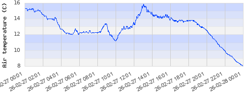 15.31 ºC | 13.95 ºC | 12.19 ºC | 13.38 ºC | 13.51 ºC | 14.2 ºC | 13.74 ºC | 11.21 ºC |