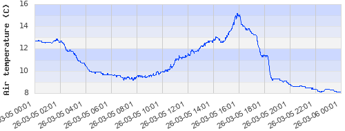 12.71 ºC | 11.77 ºC | 9.73 ºC | 9.52 ºC | 11.5 ºC | 12.99 ºC | 11.36 ºC | 8.65 ºC |