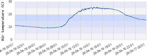 11.65 ºC | 10.29 ºC | 9.73 ºC | 11.81 ºC | 22.7 ºC | 25.69 ºC | 24.31 ºC | 18.58 ºC |