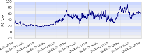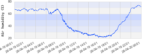 15.96 ºC | 15.16 ºC | 14.27 ºC | 19.09 ºC | 24.62 ºC | 27.3 ºC | 26.95 ºC | 20.65 ºC |